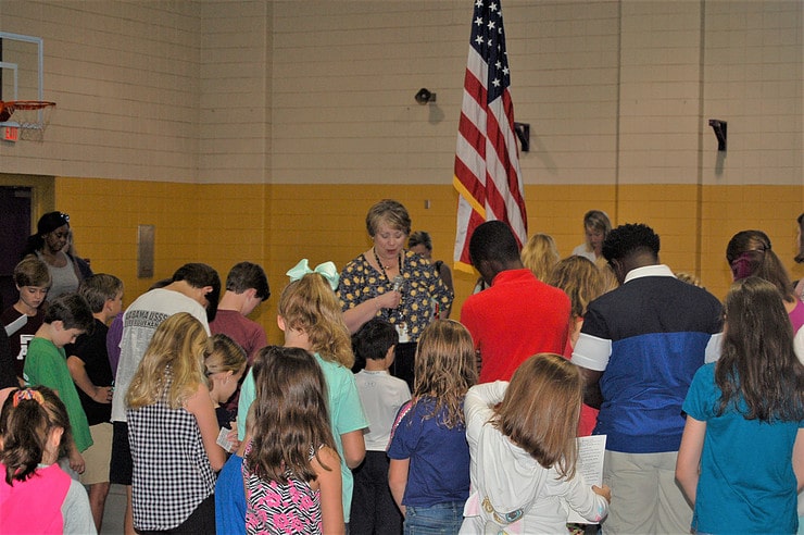Over 50 students and parents of Daniel Pratt Elementary School gathered together at 7 a.m. on Wednesday morning in prayer and worship at the school gym for their first ever “See You At The Pole” event.