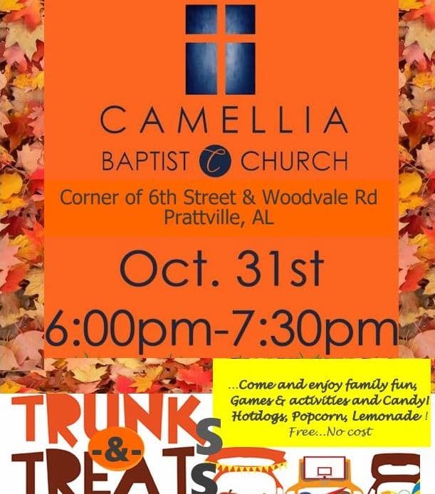 Camellia Baptist Church of Prattville will host their Fall Festival Oct. 31 from 6 to 7:30 p.m. There is no cost for this family fun event.