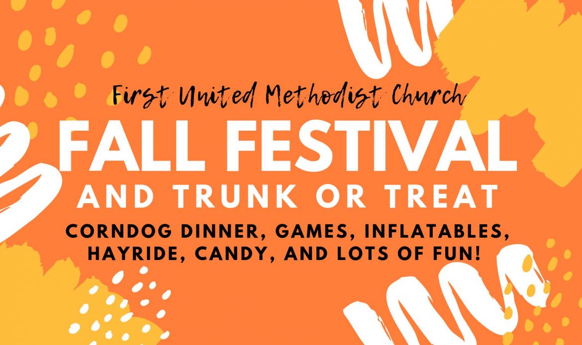 Join us on October 27th for our annual Fall Festival and Trunk or Treat!! We will have lots of candy, games, and fun. Dinner will be available for $1/person- which will include a corndog, chips, and a drink. Wear your costumes and bring your friends! See y’all soon.