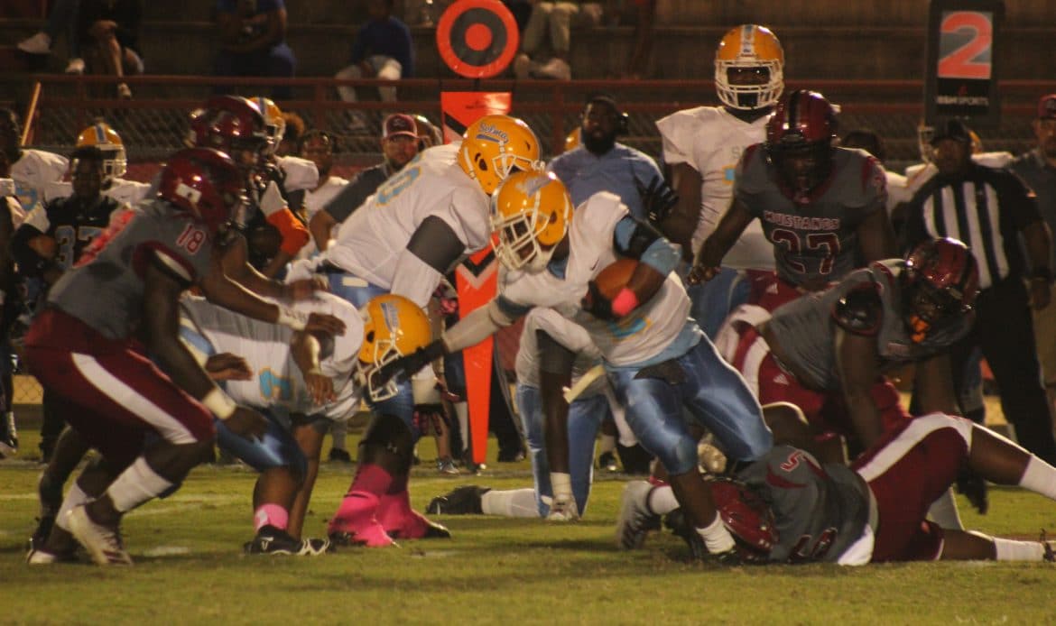 The game against Selma was the classic trap game for Stanhope Elmore. The Mustangs were coming off a huge win on the road against their biggest rival in Wetumpka, with a looming matchup the following week against powerhouse Opelika, currently ranked #8 in Class 6A. Coach Brian Bradford made sure his team did not have a letdown, with the defense providing a dominating performance. The defensive line in particular, led by TJ Jackson and William Whitlow, shut down the Selma offense, with the Saints never threatening to put points on the board.
