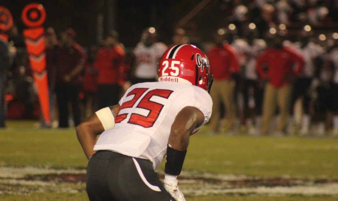The Mustangs’ next offensive possession resulted in them facing a 4th and short from their own 31-yard line. Deep in their own territory, but needing an offensive spark, Mustangs’ Coach Brian Bradford decided to go for the first down. The conversion attempt failed, giving Opelika great field possession, which they quickly converted into another score, going up 31-7.