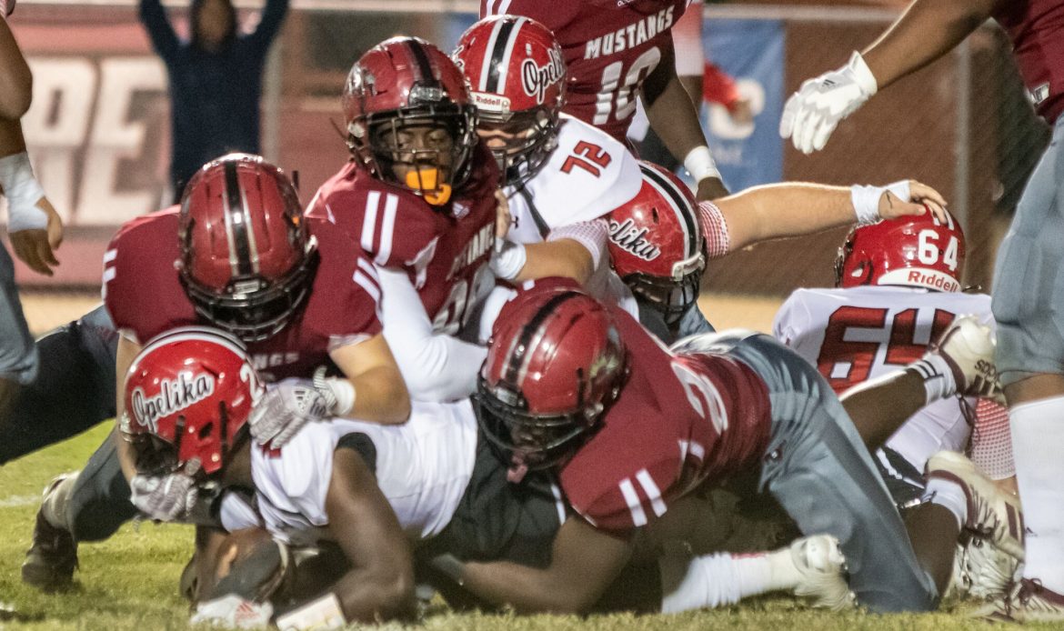 After several defensive stops by both teams, the Opelika quarterback then busted out for a 52-yard rush to get the ball inside the Mustangs’ five-yard line. The Bulldogs scored two plays later to go up 14-7, and never relinquished the lead.