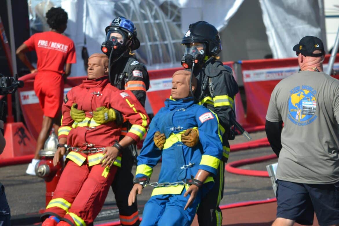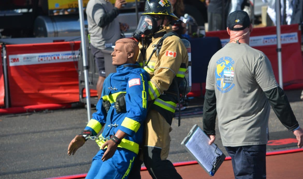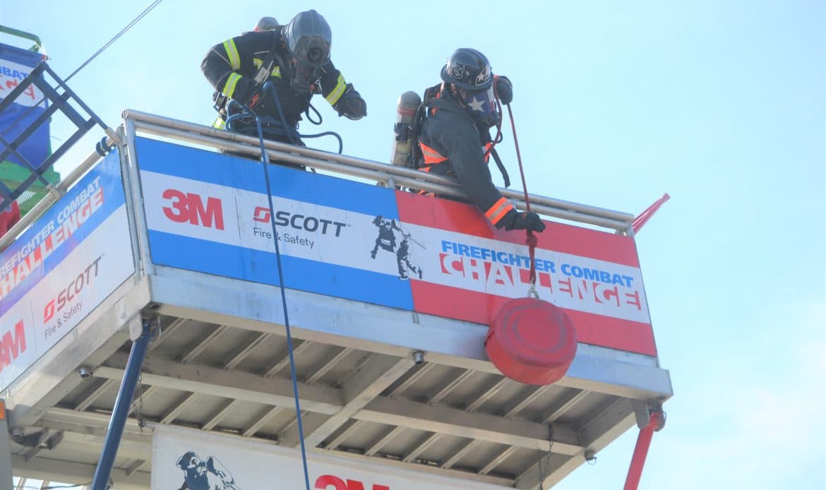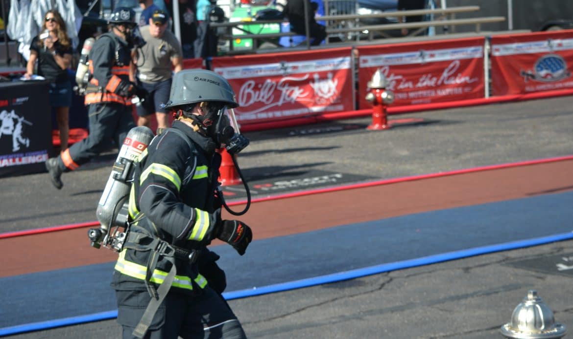 Each competitor must do each individual challenge wearing full gear – mask, oxygen tank and all. This gear can add up to an extra 40 pounds of weight for the competitors, and is worn to simulate the real life demands of the job.