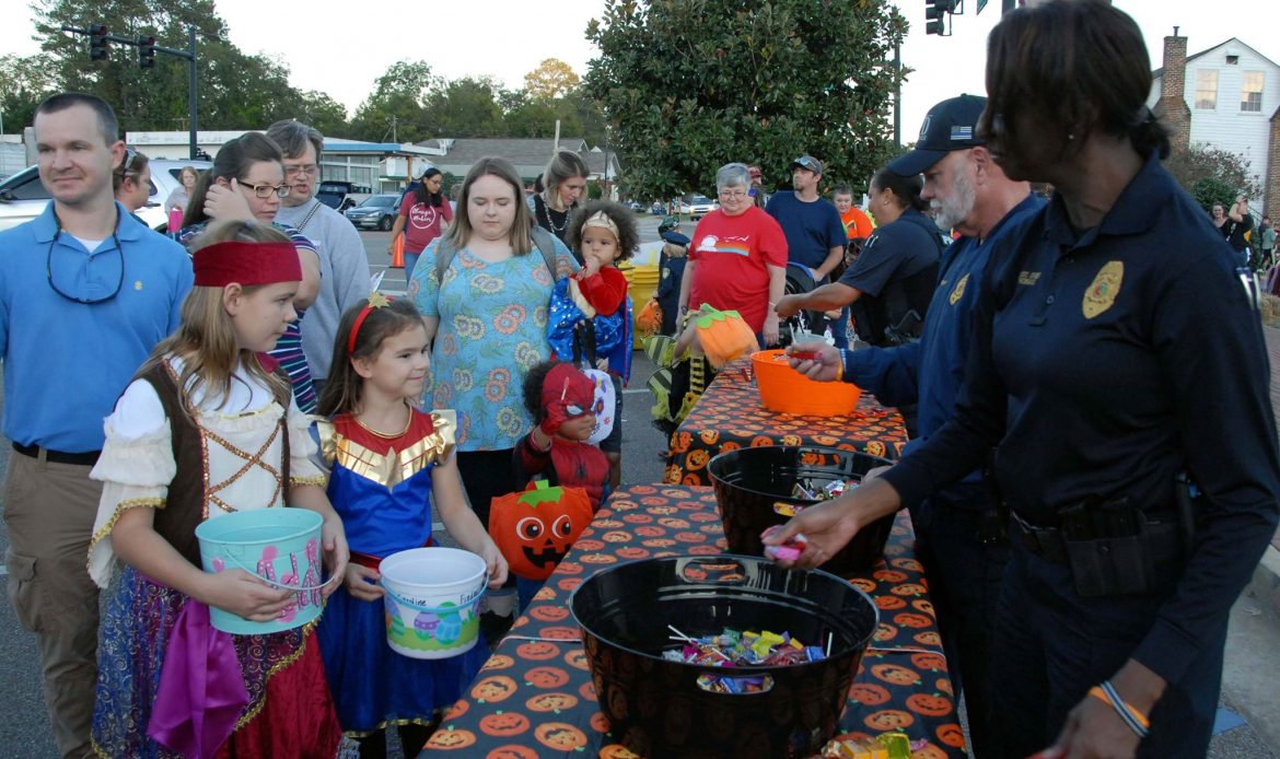 Monday night the crowds came early and stayed late. Many of the kids were joined by parents who also got into the spirit of the season, donning their own costumes. While Halloween is still two days away, this was a pre-cursor to what is to come Thursday. Streets were blocked off for safety and there were plenty of law enforcement and first responders participating as well. Businesses and organizations set up booths throughout downtown, handing out handfuls of treats, much to the delight of the participants.