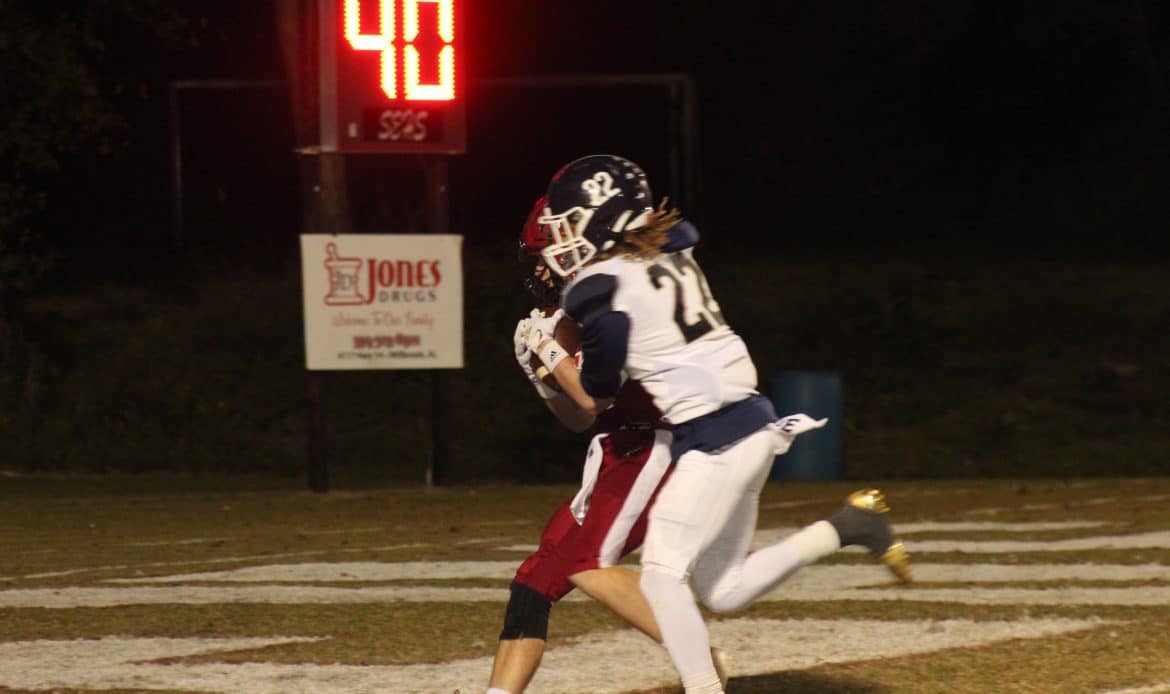 Although there was no more scoring, the Mustangs were not done setting records, with defensive back Jeremy Thompson intercepting a Paul Bryant pass in the final minute of the game. It was Thompson’s 7th interception of the season, and the 13th of his career, setting the All-Time Record at Stanhope Elmore for interceptions in a career, a very impressive statistic considering the talent that has roamed the secondary for the Mustangs in the 55 years they have fielded a football team. When asked about the reasons that have led to his record-setting performance, Thompson was quick to give credit to his teammates and coaches. “The defensive line gets a lot of pressure on the quarterback and forces them to get rid of the ball quickly, and I try to take advantage of it and get to the ball first. Coach Adams helps, always making sure we are in the right position.”