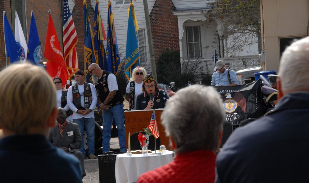 After giving her heartfelt speech, Commander JD Jones with the Veterans of Foreign War came to the podium and gave the Veterans in the audience a direct message.