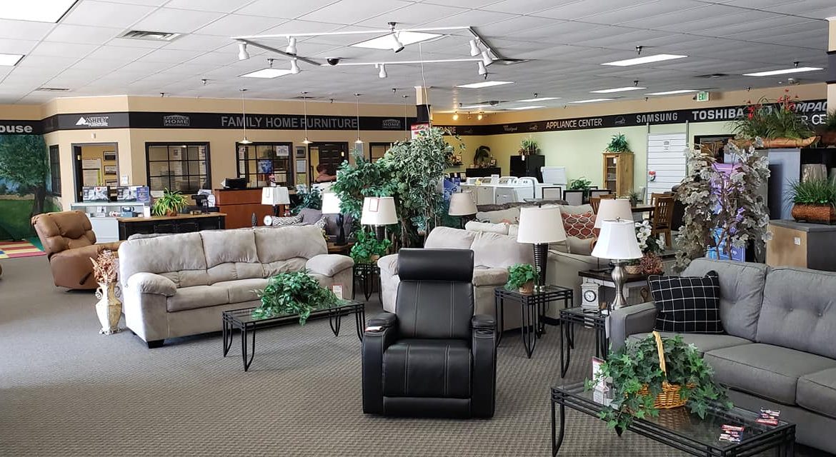 From Hwy. 14 in Millbrook, you can see the sign for Family Home Furniture, with the windows brightly displayed. What you donโt see is the intensity, love of community, and passion for Family and Customer Service within the business.