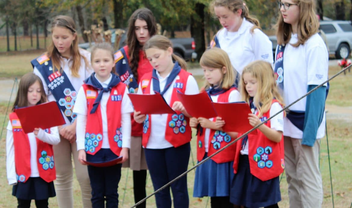 “This is the second year we have had this ceremony here,” Waldrop said. “This area has a big military population and we get a lot of girls in our troop who are in military families. Everybody has an aunt, uncle, or father who may be in the military and it means a lot to be able to do something that is such a service to the community.”