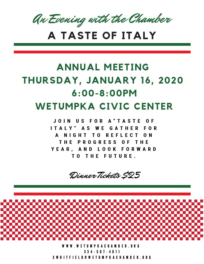 ‘An Evening with the Wetumpka Chamber,’ with A Taste of Italy Coming Jan. 16 to Wetumpka Civic Center