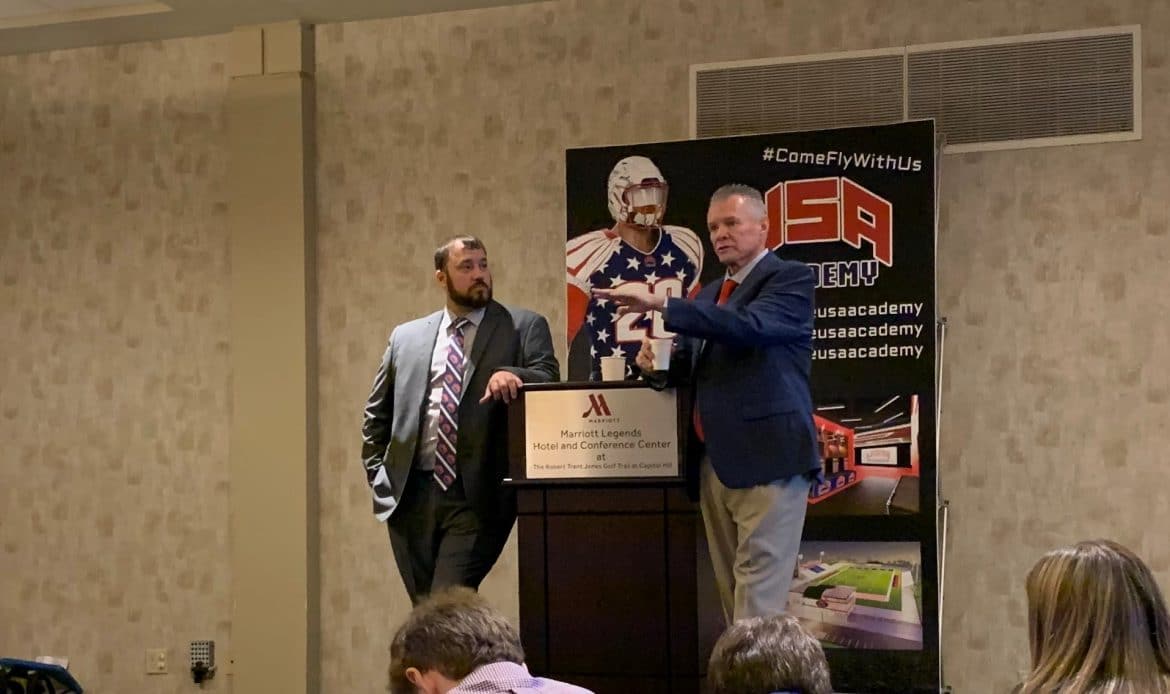 Rush Propst was introduced this morning as the head football coach of the planned private school USA Academy which will reportedly be located in Coosada off Lynn Drive. The press conference took place a the Prattville Marriott.