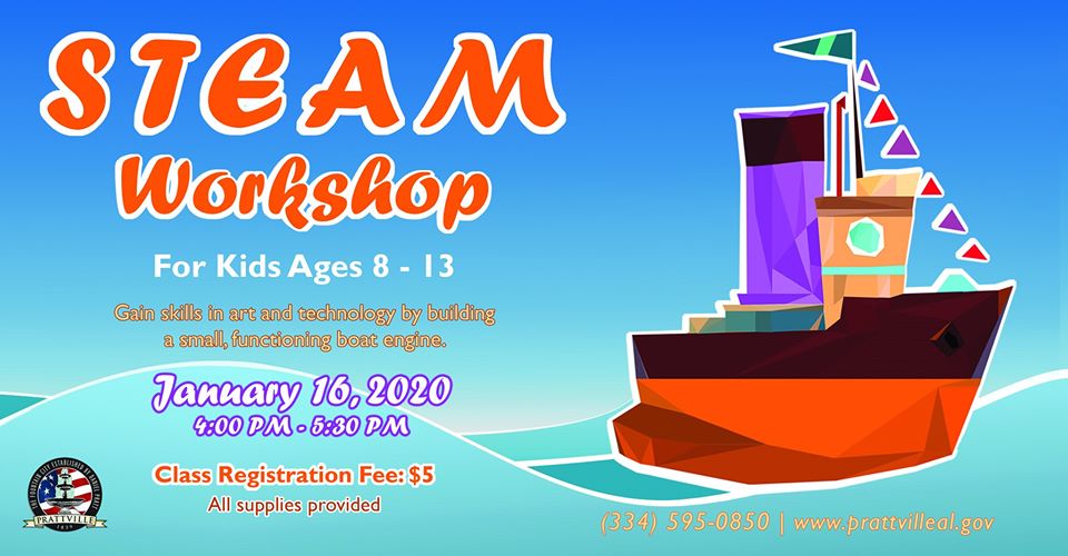 Students ages 8-12 will create a work of art while learning about one of the four STEM subjects. This season’s workshop will focus on technology and each student will create a simplistic, functioning engine. Space is limited and registration is required. Registration fee is $5. For more information, or register, call (334) 595-0850.