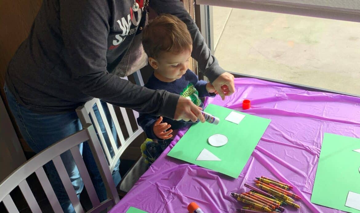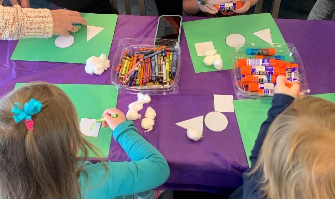 After reading the two books to the audience, Curry brought Chester back out of bag and let him show the kids what craft they would be doing that day. Chester showed his lovely artwork of colorful flowers and snow, which the kids then tried to mimic as they sat down at their crafting tables.