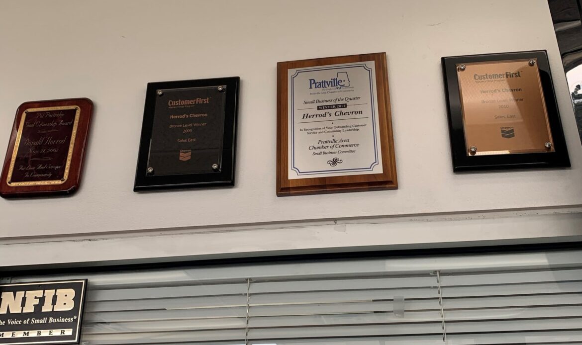 “Over the years we’ve received awards for our service, some through Chevron. They sometimes send ‘mystery shoppers’ out who essentially review your location. You don’t know it at the time, but they are basically making notes about the cleanliness of the station, friendliness of the employees, and overall efficiency of your location. For every year that I can remember, we’ve received full remarks from Chevron,” Herrod said.