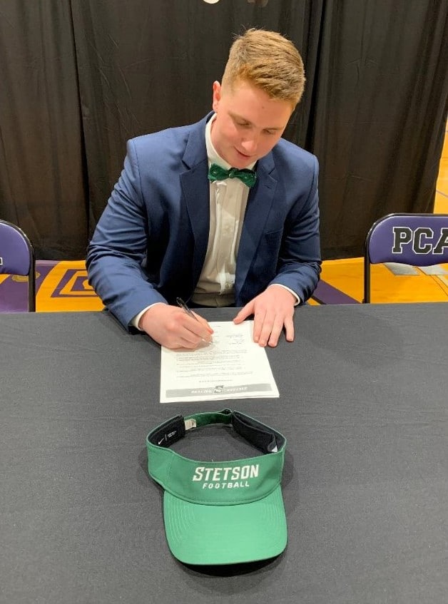 On Wednesday afternoon, Feb. 5, the Prattville Christian Academy student body gathered in the gym to watch senior Jake Bius sign his letter of intent to play football for Stetson University, a private college located in DeLand Florida.