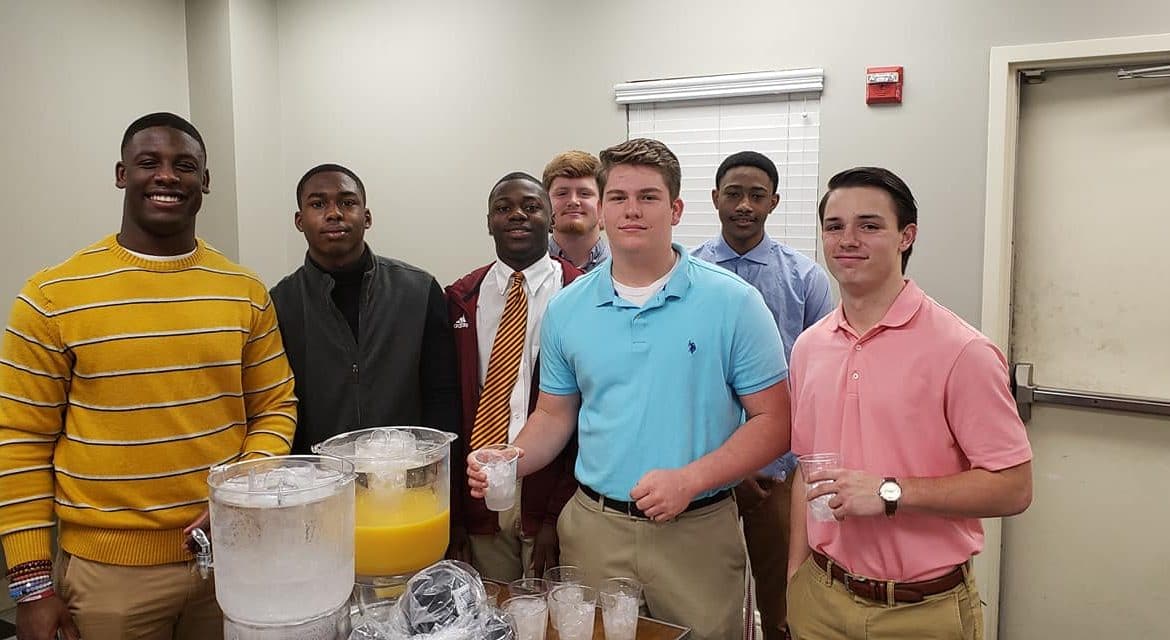 “These guys (football players) are here today because you are always there for them, cheering them on at games. We thank Coach Brian Bradford and his players for being here to show support,” Fuller said.