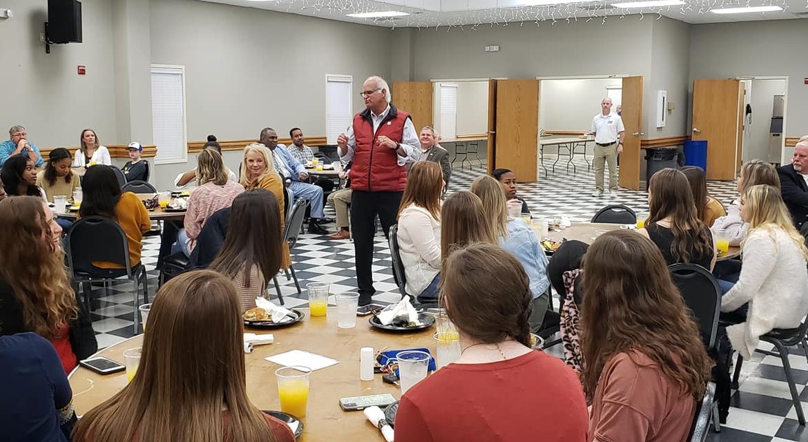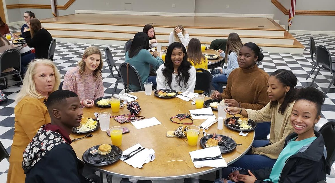 But, before they left, the crew was treated to a hearty breakfast, thanks to the Front Porch Grill, at an event held at the Millbrook Civic Center Thursday morning. Helping serve the girls were members of the Stanhope Elmore High School Mustang Football Team.