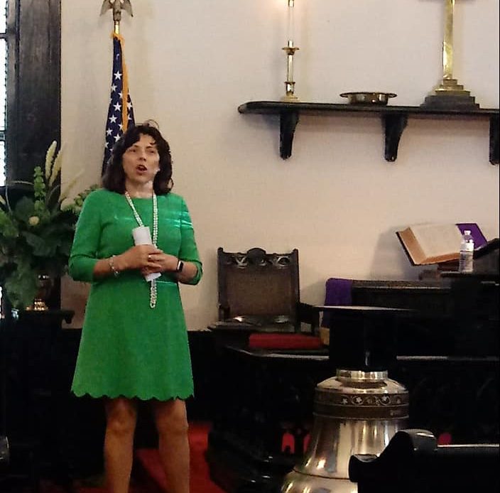 Dr. Cathy Wood Cowart, of Montgomery, gave the salutation for the bell this morning, which included the fact that this will be the FIRST BELL to be installed in the historic church. The church belfry has never had a bell. The congregation looks forward to hearing it ring out across Mulberry and Statesville in the near future.