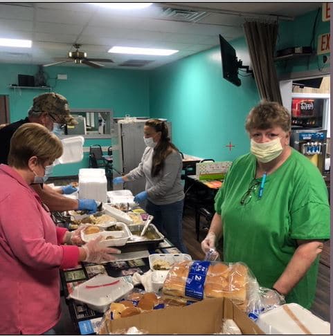 Filling such a big order takes manpower and Lucretia Cauthen of Lucretia Cauthen Realty, volunteered her time to help on the Front Porch Grill meal assembly line. “I went up to Front Porch Grill on Thursday to order some lunches and I saw how busy they were at that time. The servers were doing all that they could. I found Marty Bean and asked if there was any way I could help and he put me to work on the assembly line. I would do it again if he needed me,” Cauthen said.