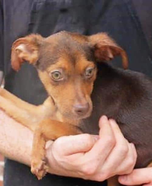 Duke is a 4-month-old male Lab/ Terrier mix.  He is chocolate with tan markings and he is quite the handsome guy!   Duke will grow up to be a medium sized adult dog who will weigh between 30-60 pounds.  He appears a bit sad in his pictures, but we know he will be a happy, bouncing, bundle of joy in his new home.  Duke will be great as a family dog because he is good with children and other dogs.  He is going to bond quickly with his new family–could it be yours?  Duke is currently in a foster home.  If you are interested in meeting this precious young dog, please call & make an appointment to meet him as shown below.
