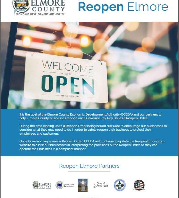 During the time leading up to you being able to reopen, ECEDA is encouraging our businesses to be prepared to protect their employees and customers when that time comes. “Our business owners are responsible citizens and stand ready to take the necessary steps to safely reopen,” stated Art Faulkner, Chairman of ECEDA. We have created a website that will help businesses have all the information they need , in one place, to safely and successfully navigate the path to reopening their business and restarting our economy. This restart will also lead to renewing of our motto, “Elmore County where Business Meets Pleasure.”