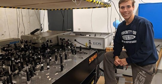 “My whole REU was based on research on optics,” he said. “I basically worked with fancy lasers, shooting it at cancer cells trying to kill them. Mourou invented the method where you shoot a laser like how a bird chirps.