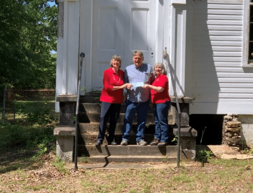 On May 1, 2020, the Old Autauga Historical Society (OAHS) was given a $500 donation from the Atagi Chapter, National Society of the Daughters of the American Revolution, to be used towards the preservation of the Old Vine Hill Presbyterian Church, located near Jones in Western Autauga County. The funds will be used specifically for repainting the exterior of the church.