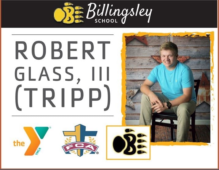 Tripp Glass is the senior award winner from Billingsley High School. Glass played many sports including basketball, football, and baseball. He served as captain of the baseball team for two years and as captain of the football team for two years.
