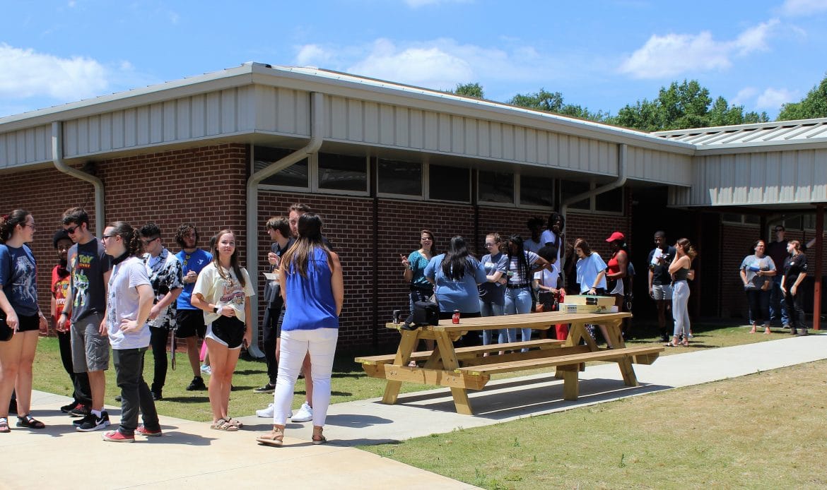 The heat was a little intense, but the students seemed happy to get out and talk with their friends. Music was blasting and games were set for the students to play.