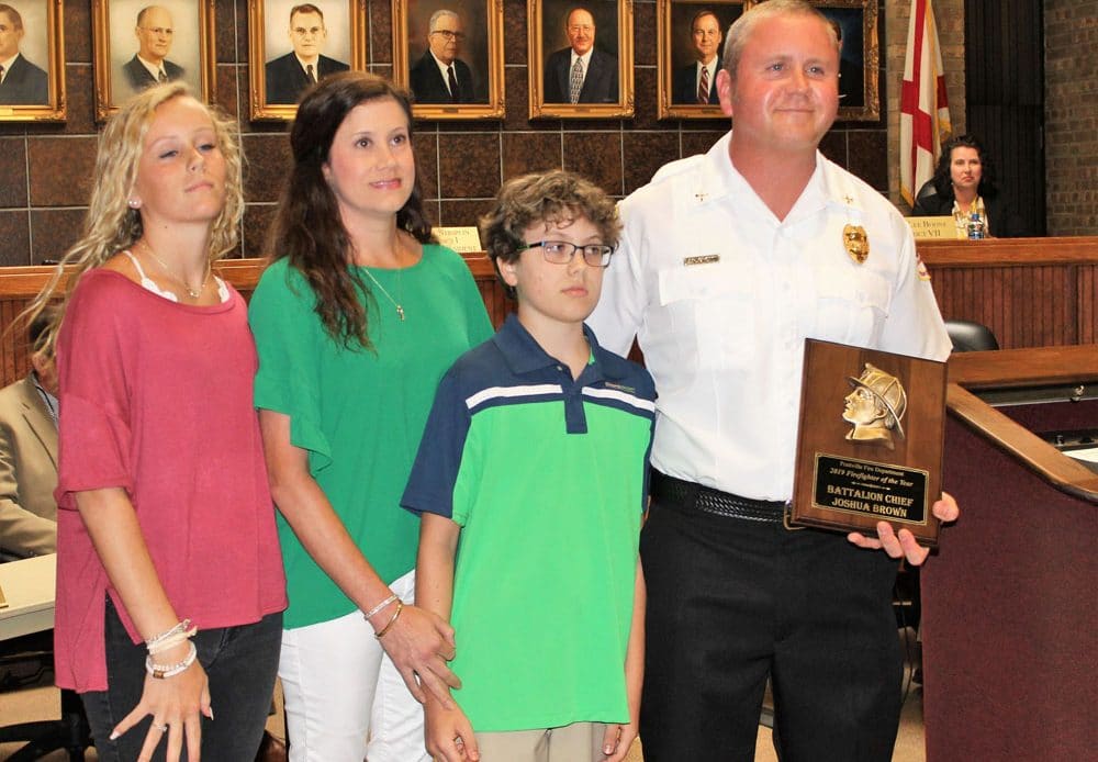 In another issue, Mayor Bill Gillespie presented a plaque to the 2019 Fire Fighter of the Year, Battalion Chief Josh Brown. The winner is selected internally by the employees of the fire department.