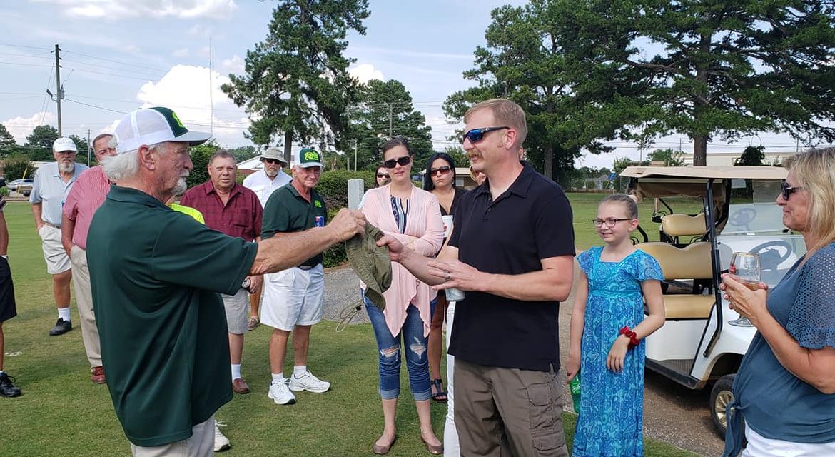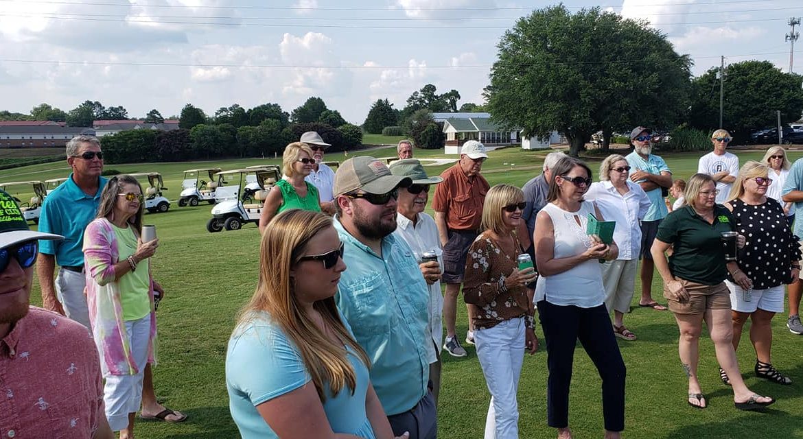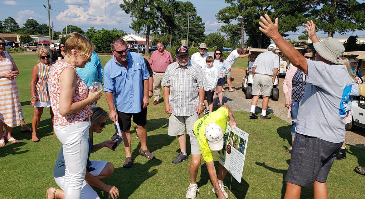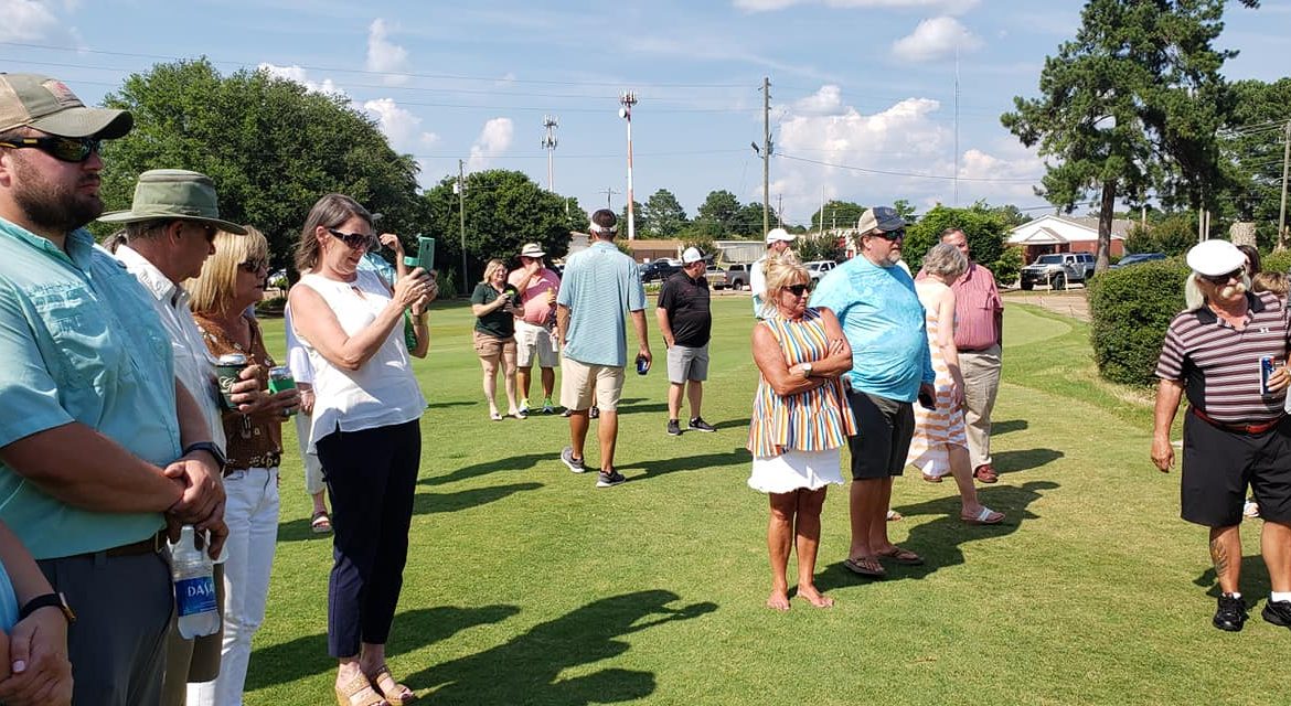 “I want to thank everyone for coming out today to honor a gentleman that we all loved and that loved this golf course,” Millbrook Mayor Al Kelley told the large gathering. “JP came to me about five years ago and said ‘Al, we need to cut a bunch of trees down, and do this and that.’ I agreed. I probably didn’t realize until I saw that green today. JP had a vision for that hole. All my experiences with JP, Judy and Earl and Sharon Mills…even when we bought the golf course from them in 2004, have been great. This was JP’s second home. At times you probably believed it was his first home.”