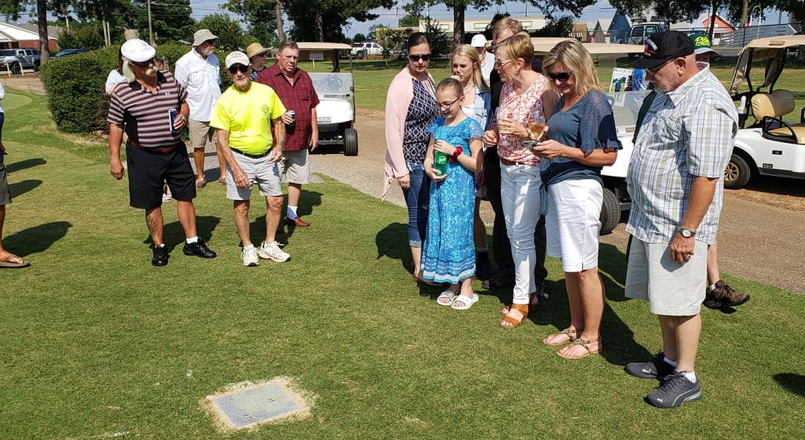 Since that time the city, family and friends have planned a way to remember JP. “Nothing fancy,” Mayor Kelley said. “JP would not have wanted that. We have hamburgers, hot dogs, good music and friends here to speak well of him, who will always love him. But this marker will stay here. He is still with us, and I believe he is watching over the course that he so loved.”