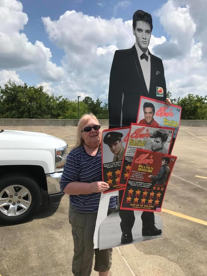 Like so many family members, they cannot visit her in the hospital. But friends and family have been gathering in the hospital parking lot so Marci can see them from her window. The photo shows a family member who visited, bringing a little bit of “Elvis” to brighten Marci’s spirits.