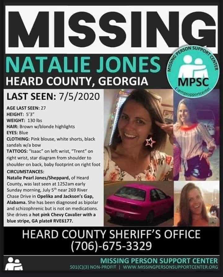 Natalie Jones is from Heard County, Georgia, but was last seen in Alabama! Please if you have any information about this missing woman, contact Heard County authorities.