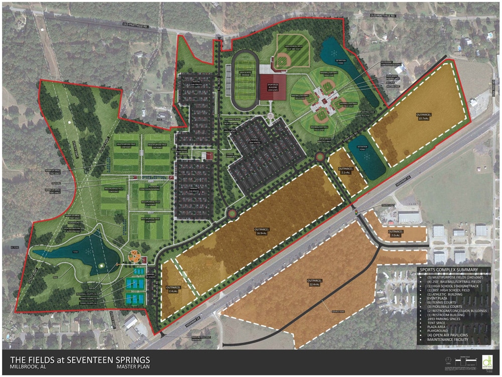 What is being called the “Fields at 17 Springs” Multi-Sport Complex will include acreage recently purchased through a joint project between the City of Millbrook and the Elmore County Commission.