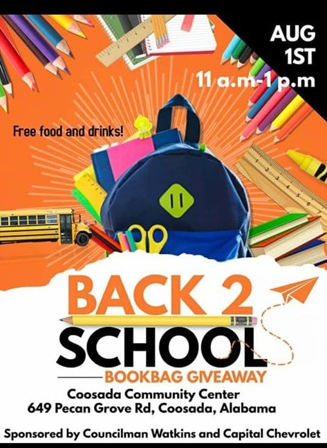 Back to School Event Coming to Coosada Aug. 1; Sponsored by Councilman Roosevelt Watkins, Capital Chevrolet