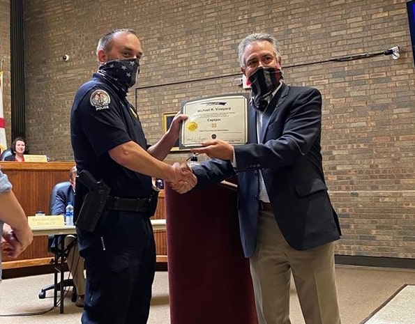 In other news, Gillespie recognized Prattville Police Officer Michael K. Vineyard for his promotion to Captain. “We appreciate your service and dedication to the City of Prattville,” Gillespie said. See photo below