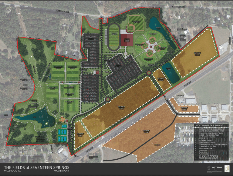 On July 22nd, the Greater Montgomery YMCA, Elmore County Board of Education, City of Millbrook, Elmore County Economic Development Authority, and the Elmore County Commission announced an exciting project for west Elmore County called The Fields at Seventeen Springs. On August 12th, the partnership released a Request for Qualifications/Proposals (RFQP) for architectural services for the project. In addition to our current design partners who helped develop our master plan, Dalhoff Thomas and Krebs, the partnership desires a complimentary design firm who can handle architectural services for the entire project and most importantly The Fieldhouse, a centerpiece to the overall development.