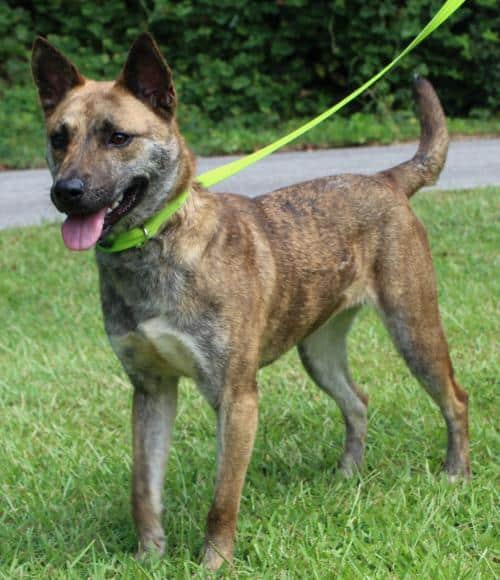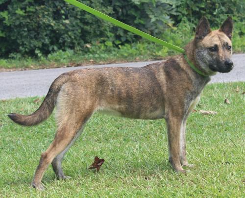 Evelyn is an 1-year-old female Shepherd mix who has already been spayed. She has a brindle coat with white markings on her chest; and we think she is just a beautiful gal. Evelyn currently weighs 37 pounds so she is considered to be a medium sized young dog. She is a typical sweet girl who is so full of love and affection and she is very well behaved. Evelyn wants to have a home with children so she can play and show off for them. She would also be quite good with other dogs. Evelyn is so ready for her very own loving family and “forever” home. Come out and meet this affectionate girl. You will see that she is just the sweetest dog ever! Evelyn will make an absolutely perfect addition to any family and home.