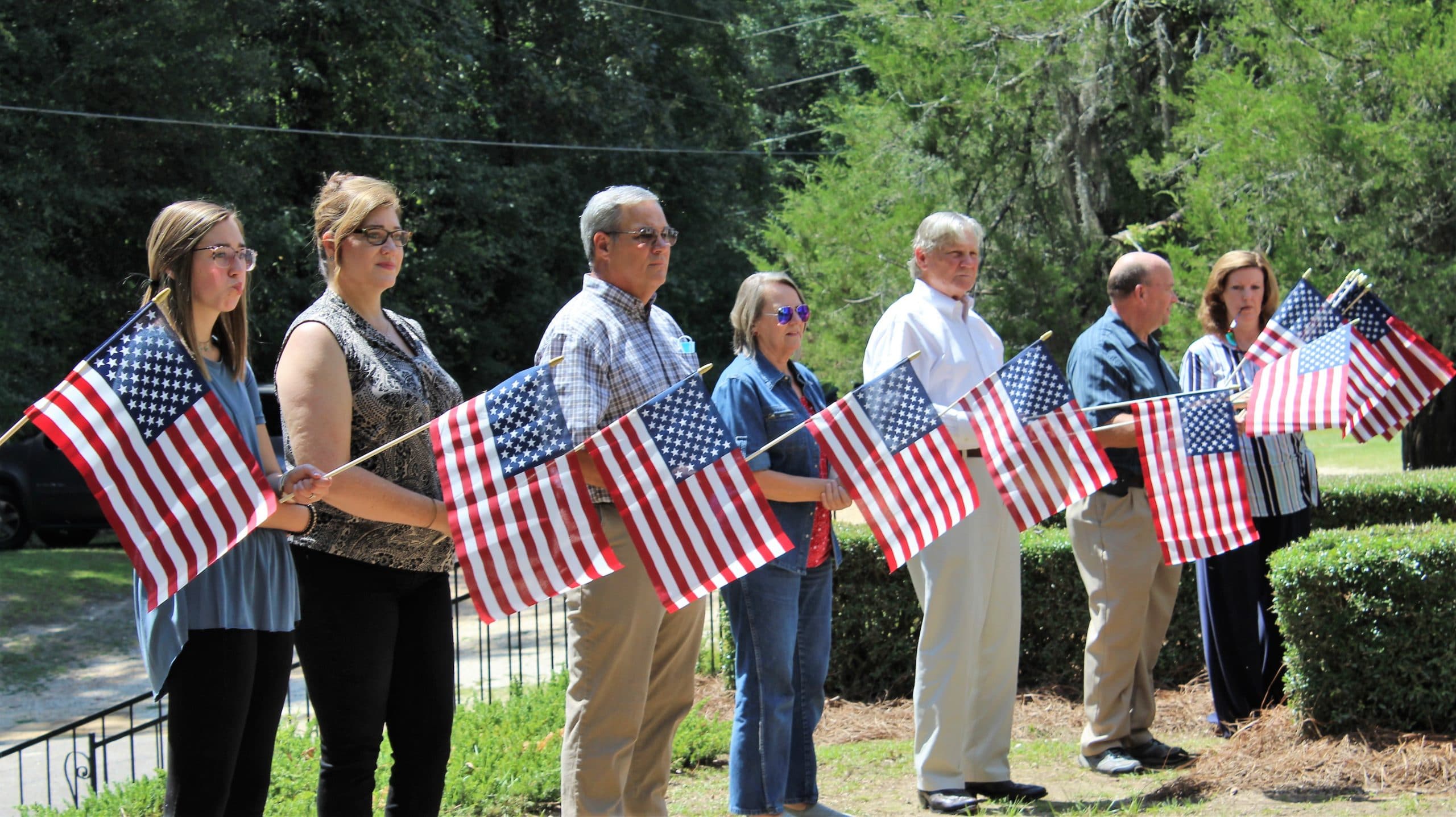 The flag tribute was for Benjamin “Russell” Wood, 95, of Statesville and was held at Ivy Creek Methodist Church this afternoon. It was organized by the Old Autauga Historical Society (OAHS).