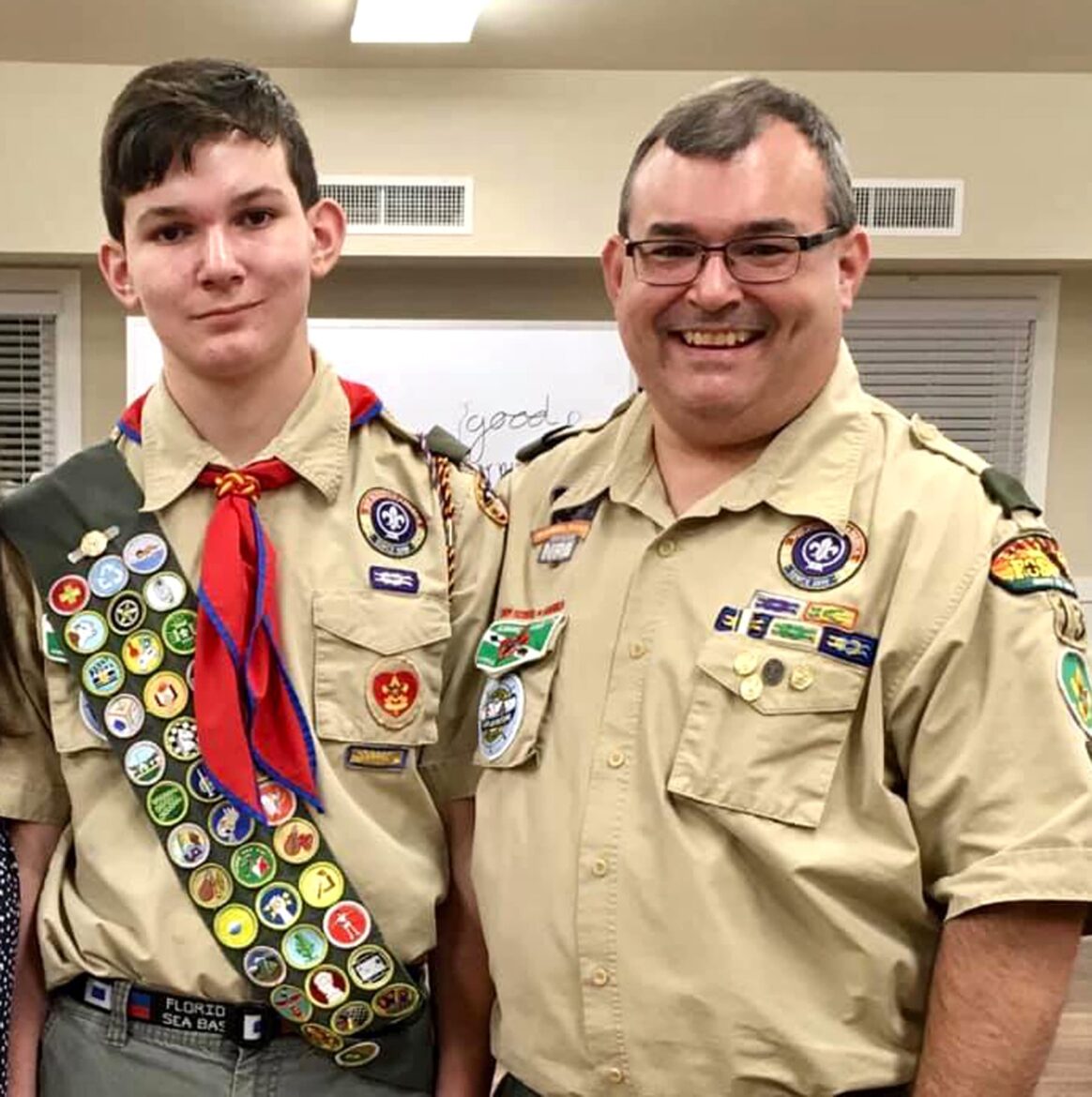 In the photo above, Rouse is shown with his father, Troop 13 Assistant Scoutmaster Scott Rouse.