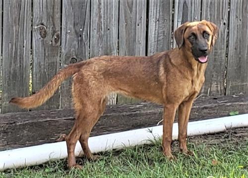 Amelia came to us as a stray very thin and covered in fleas and ticks. She rather looks like a Shepherd/Hound type mix but has the drive and “mouthiness” of a Heeler so perhaps all three, or who knows. She is about one-year old, not a big girl at only about 35 lbs. She is ACTIVE though – loves to run and run and run some more. She loves toys. Big NO to cats, but good with dogs. Because she shows a bit of that Heeler “nippiness” older children only please.