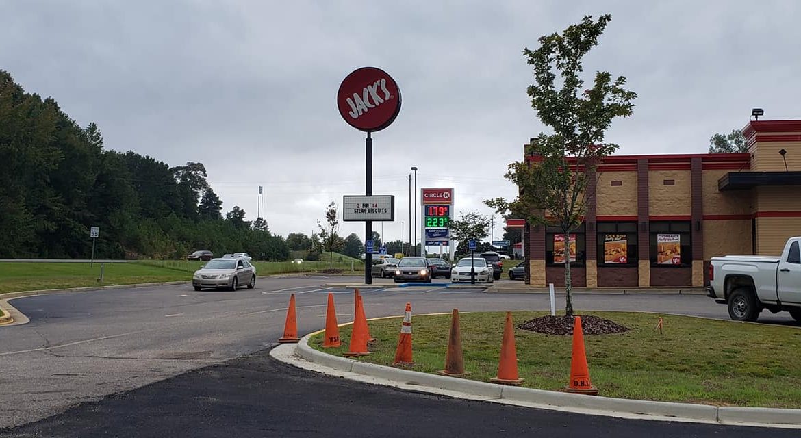 Currently a road to nowhere between the new Popeye’s location and Jack’s is actually a nod to the future. The near 80 acres of land was annexed into the City of Millbrook, and is now in the hands of a developer. At some point, this will be the access point to that property and whatever may come.