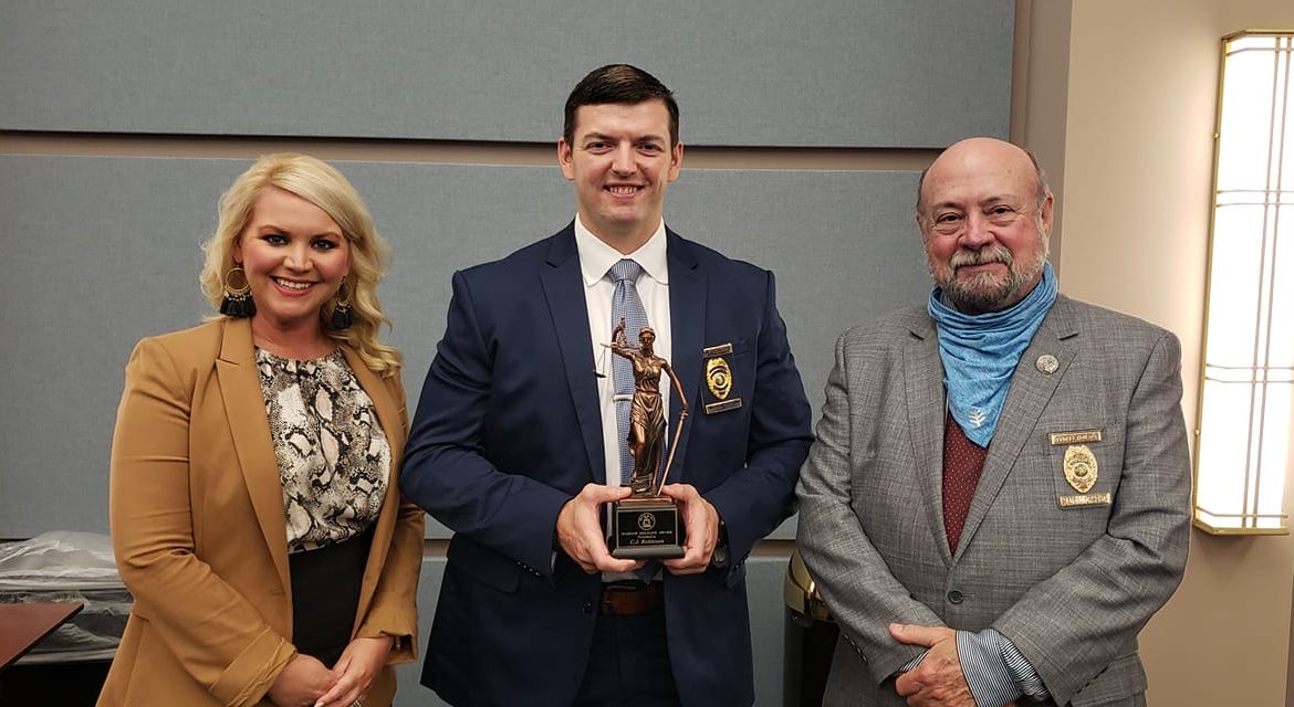 Chief Assistant DA C.J. Robinson holds the award he received Friday.