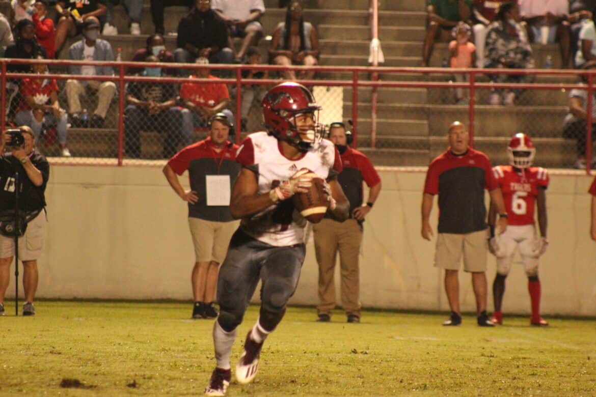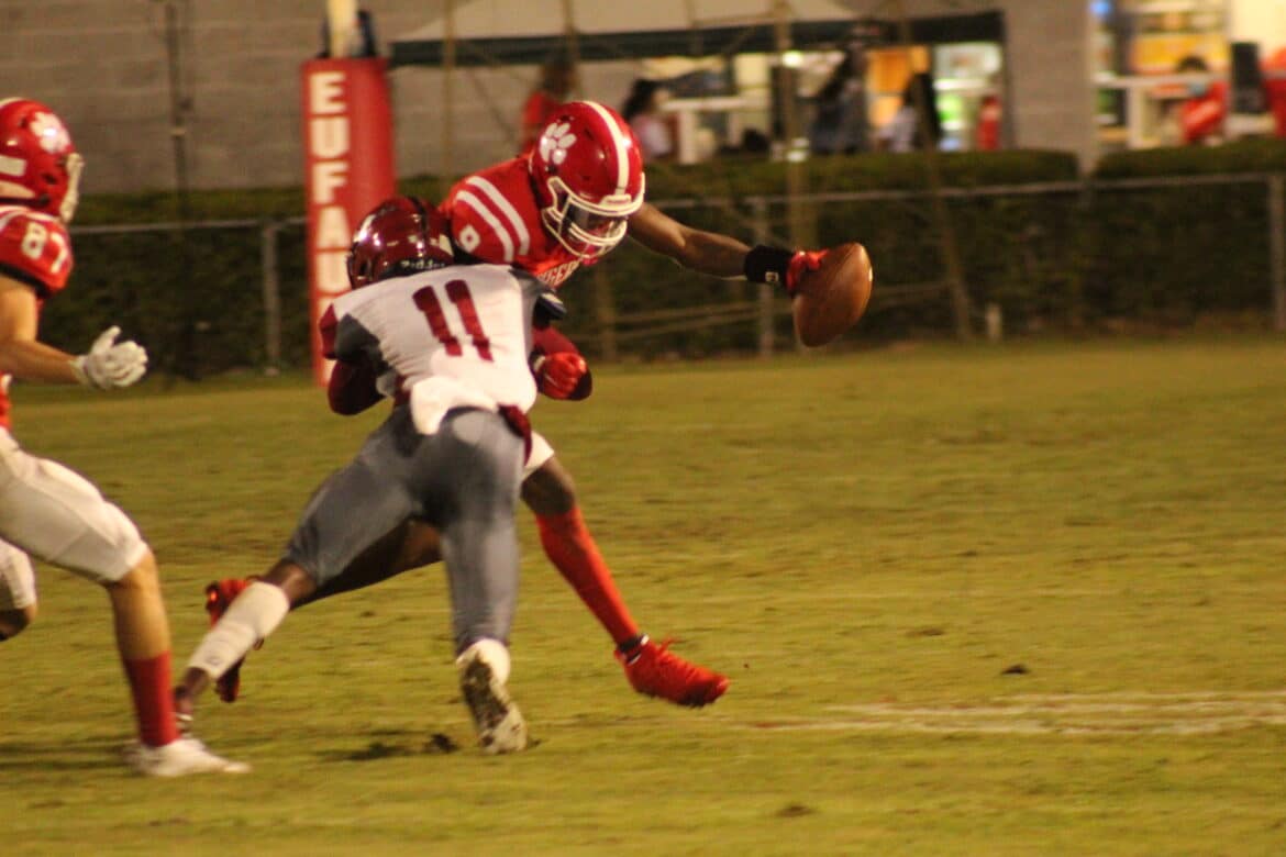 Meanwhile, the Tigers showed why many media outlets selected them as the best group of wide receivers in the state. Eufaula quarterback Hess Horne operated a sophisticated passing offense, spreading the ball around to Division 1 prospect Rodarius Thomas, as well as sure handed receivers Jamarian Lewis, Ethan Black, and Devin Fuller.