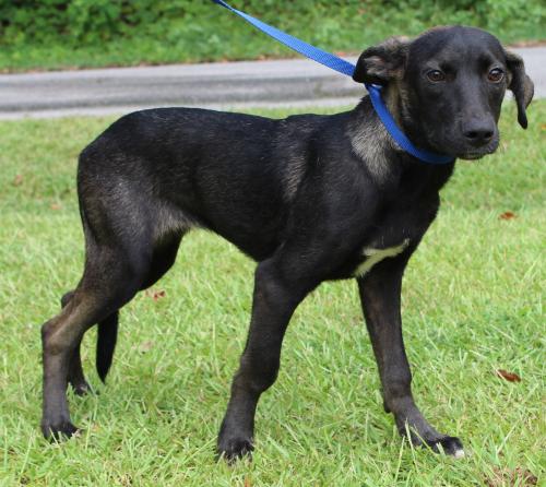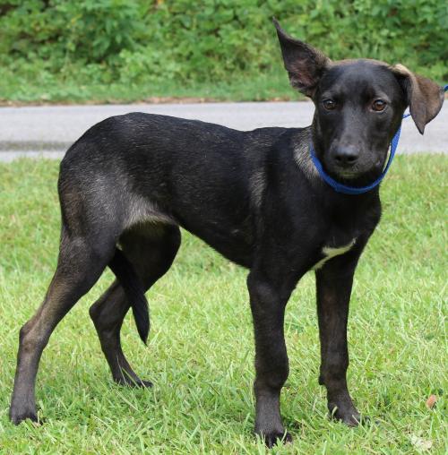 Layla is an 1-year-old female Black Lab mix who has already been spayed. She was an owner turn in to PAHS because she would not stay in the fenced yard. Layla is black with some brown highlights in her coat and she has a tiny bit of white on her chest. That one ear up and one ear down look is really working for her and adds to her cuteness! She weighs 35 pounds so she is considered to be a medium sized dog. Layla is such a sweet dog. She is a frisky and playful dog who would need a nice, secure fenced yard where she could safely play. Layla loves other dogs and would not mind being in a home with another dog; and she would be great with children. She is both leash trained and house trained. She is such a beautiful and precious dog. Layla longs to have a family who will love her and give her a forever home. We can’t wait to see this happen for her.