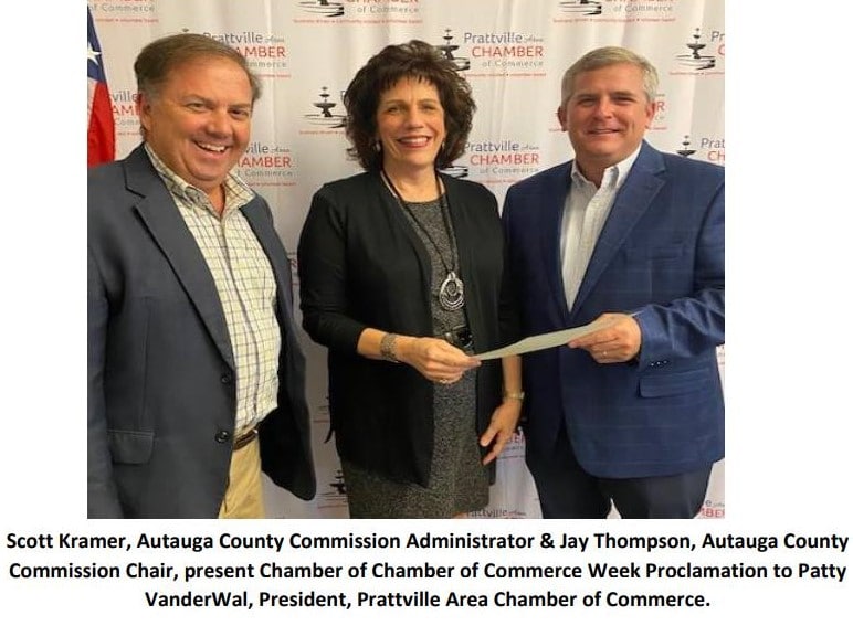 The proclamations from the City of Prattville and the Autauga County Commission applaud the Prattville Area Chamber of Commerce’s work to advance, enhance and strengthen the quality of life in Autauga County and Prattville by promoting increased employment, commerce, and growth and by encouraging new businesses and individuals to locate in the Prattville/Autauga community. President Ronald Reagan once said, “no community will ever be very much better than its chamber of commerce causes it to be.”