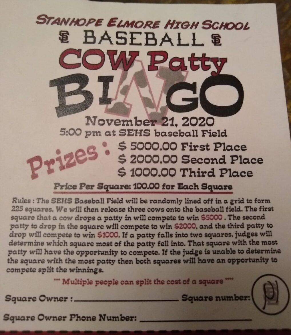 The Stanhope Elmore High School Baseball Team is gearing up for their annual Cow Party Bingo Fundraiser. Ticket Sales have begun for their largest fundraiser of the year. The event will be held Nov. 21 at 5 p.m. at the SEHS Baseball Field.