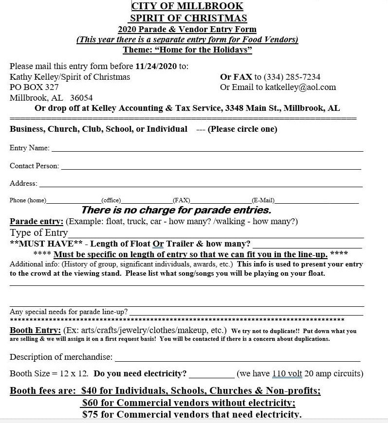 For more information call Spirit of Christmas Chairman Kathy Kelley at 334-322-9871