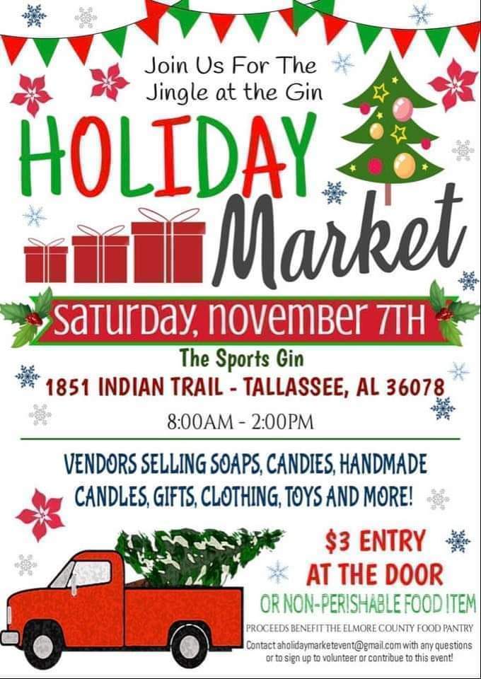 HOLIDAY MARKET!🎄🎄🎄 Will have plenty of vendors, food items for all your Holiday shopping needs. $3 at the door or a non-perishable food item to help benefit the Elmore County Food Bank during the holidays. Our committee will be taking all safety precautions and sanitation for COVID-19. As the event gets closer, we will inform everyone about mask. 😷 With excitement and hard work we’re at capacity for booths with a overflow out front and will not accept anymore. We currently have over 55 booths.