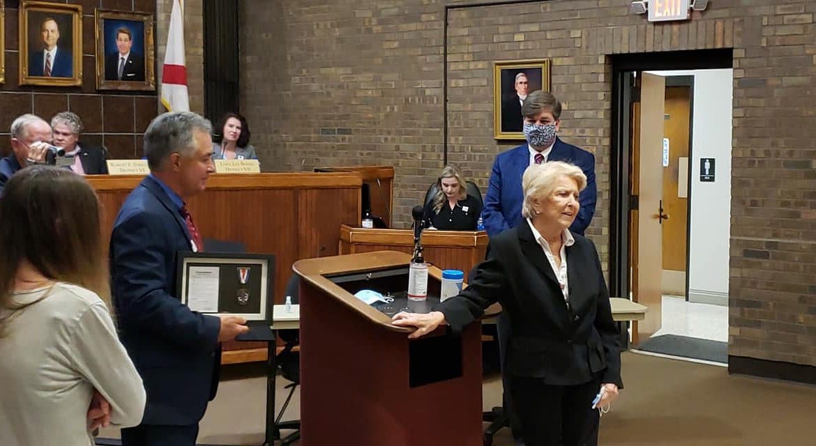Top Photo: Mrs. Sid Thompson received much applause and a standing ovation after her Commendation presentation at last week’s Prattville City Council meeting.